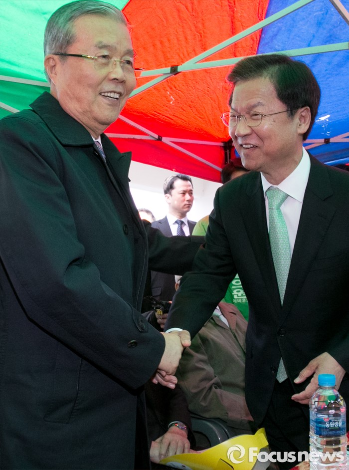 여론조사와 관련한 보다 자세한 내용은 중앙선거여론조사공정심의위원회 홈페이지(www.nesdc.go.kr)에서 찾아볼 수 있다.(광주=포커스뉴스) 김종인(왼쪽) 더불어민주당 비대위 대표와 천정배 국민의당 공동대표가 27일 오후 광주광역시청 문화광장에서 열린 2016 부활절 연합예배에 앞서 내빈대기실에서 만나 악수하고 있다. 2016.03.27 박동욱 기자
