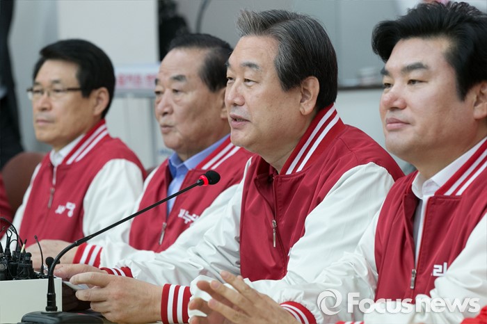 (수원=포커스뉴스) 김무성(오른쪽 두번째) 새누리당 대표가 1일 오전 경기도 수원시 장안구 정조로 새누리당 경기도당에서 열린 중앙선대위 회의에 참석해, 모두발언하고 있다.