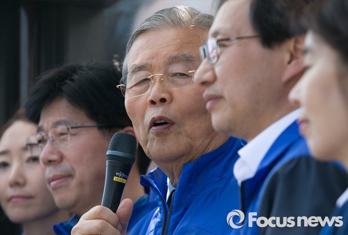(전주=포커스뉴스) 1일 오전 전북 전주 모래내시장 입구에서 열린 더불어민주당 최형재 전주을, 김성주 전주병 후보 유세에 참여한 김종인 비대위 대표 겸 선대위원장이 지지를 호소하고 있다.