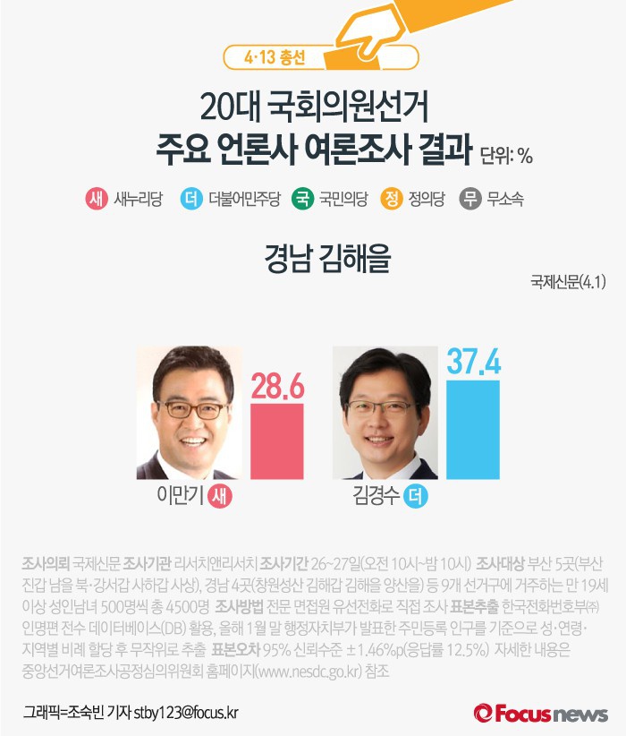 | △ [그래픽] 4.13 경남 김해을 여론조사 결과 |