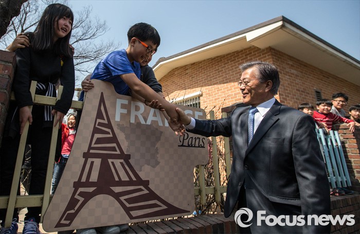 | △ 문재인 '아저씨 손 한번 잡자' |