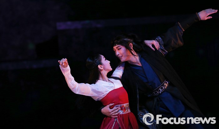 (서울=포커스뉴스) 1일 오후 서울 중구 정동극장에서 열린 2016 상설공연 '가온세상의 시작' 프레스콜 행사에 참여한 배우들이 주요 장면을 시연하고 있다.