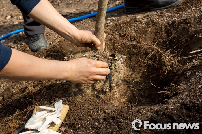 (서울=포커스뉴스) 1일 오후 서울 동대문구 배봉산에서 동대문구청 직원들이 식목일을 앞두고 나무를 심고 있다.