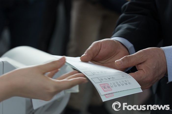 (서울=포커스뉴스) 1일 오후 서울 용산구 서울역사에 설치된 제20대 국회의원선거 투표참여 홍보관에서 시민이 사전투표 체험을 하고 있다. 체험관은 이달 1일부터 6일까지 운영한다.