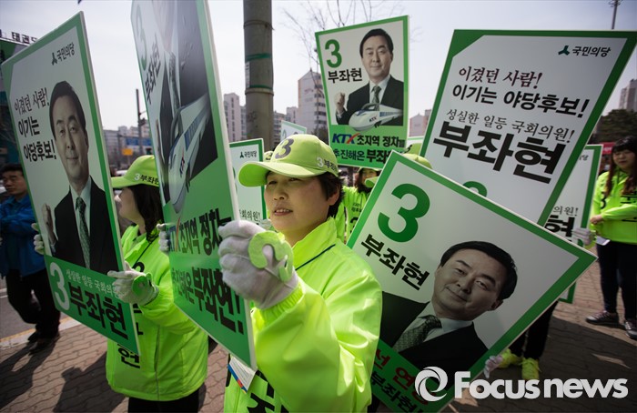 (안산=포커스뉴스) 국민의당 선거운동원들이 1일 오후 안산시 단원구 초지동에서 부좌현 단원구을 후보 지원 유세를 하고 있다.