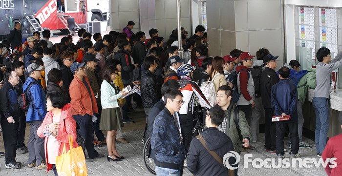 (서울=포커스뉴스) 1일 오후 서울 구로구 고척스카이돔에서 열린 2016 타이어뱅크 프로야구 개막전 넥센 히어로즈와 롯데 자이언츠 경기를 보기 위해 관중들이 표를 구매하고 있다.