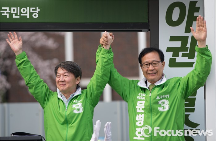 | △ 총선 승리 다짐하는 안 대표와 문병호 |