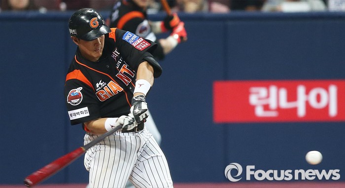 (서울=포커스뉴스) 1일 오후 서울 구로구 고척스카이돔에서 열린 2016 타이어뱅크 프로야구 개막전 넥센 히어로즈와 롯데 자이언츠의 경기 7회초 1사 1,2루 상황 롯데 황재균이 스윙하고 있다.
