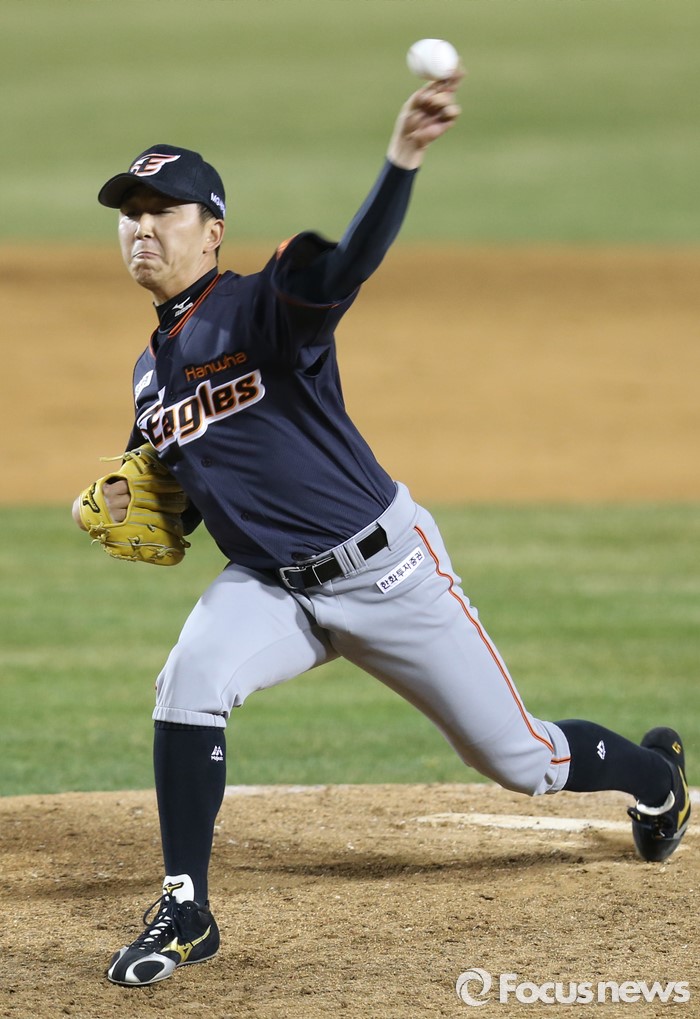 (서울=포커스뉴스) 1일 서울 잠실구장에서 열린 2016프로야구 개막전 한화-LG 경기에서 한화 투수 정우람이 8회말 등판해 투구하고 있다.
