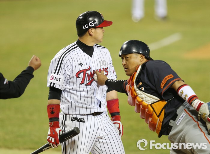 (서울=포커스뉴스) 1일 서울 잠실구장에서 열린 2016프로야구 개막전 한화-LG 경기 연장 11회말 2사후 LG 정상호가 헛스윙하며 스트라이크아웃 낫아웃으로 한화 포수 조인성의 태그로 아웃되고 있다.
