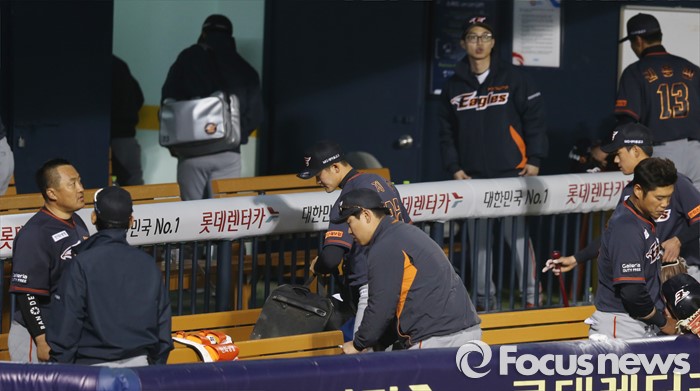 (서울=포커스뉴스) 1일 서울 잠실구장에서 열린 2016프로야구 개막전 한화-LG 경기에서 연장 12회에 역전패 당한 한화 선수들이 덕아웃에서 짐을 싸고 있다.
