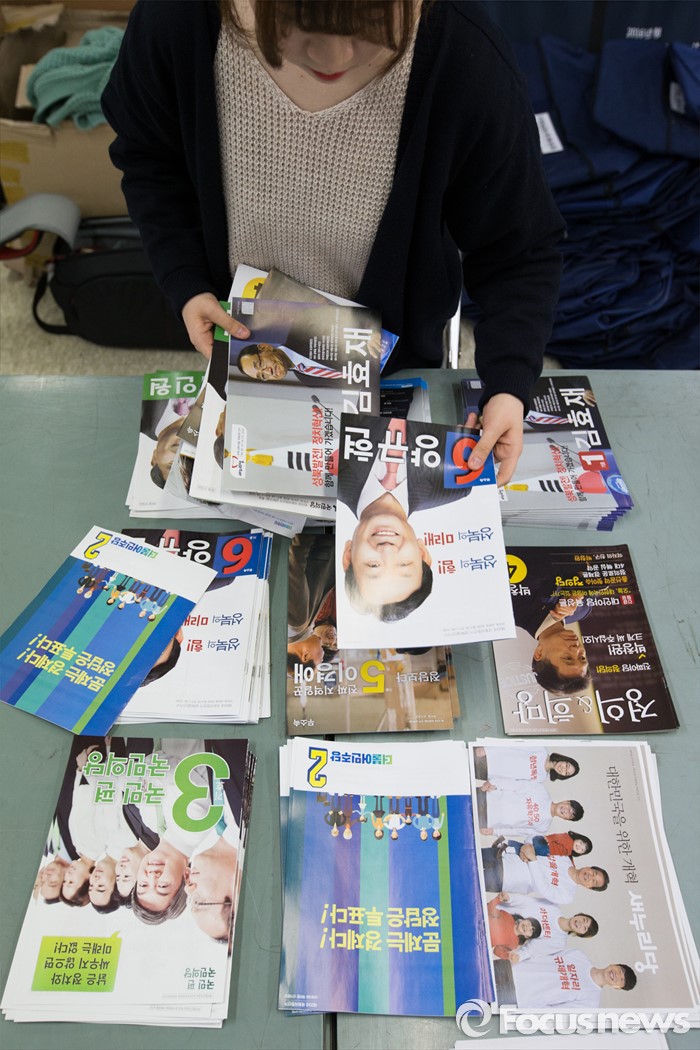(서울=포커스뉴스) 2일 오후 서울 성북구 선거관리위원회에서 한 관계자가 가정으로 발송될 제20대 국회의원 선거 공보물을 정리하고 있다.