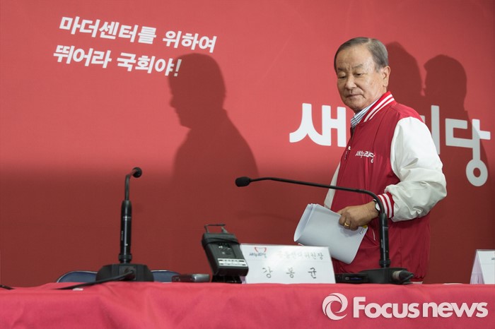 (서울=포커스뉴스) 강봉균 새누리당 공동선대위원장이 3일 오전 서울 영등포구 새누리당 당사에서 경제정책 3·4호 공약 발표를 위해 자리로 들어서고 있다.