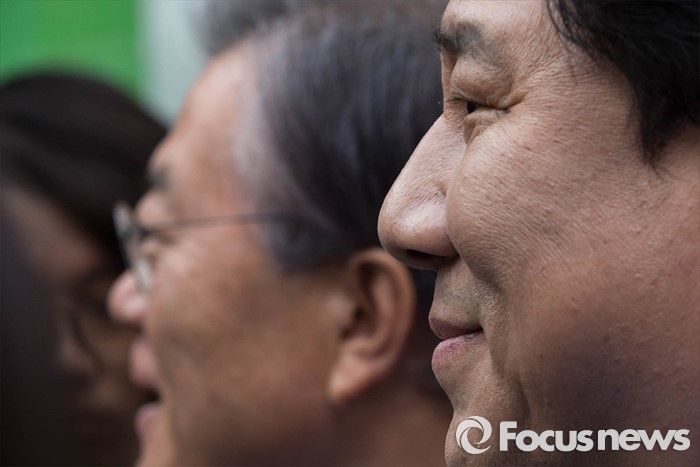 (서울=포커스뉴스) 선거운동이 시작되고 첫 주말을 맞은 3일 오전 문재인 전 더불어민주당 대표가 서울 동작구 신대방성당에서 김병기 더불어민주당 동작갑 후보를 찾아 합동유세를 하고 있다.