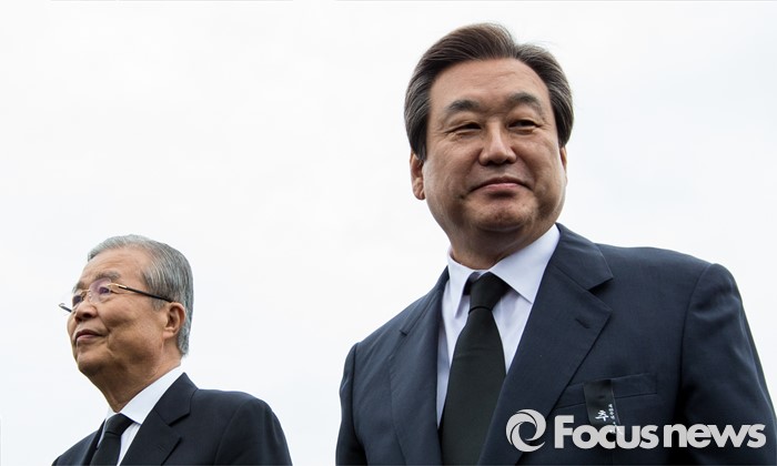 (제주=포커스뉴스) 3일 오전 제주 4ㆍ3 평화공원에서 열린 제68주년 4ㆍ3희생자 추념식에 참석한 김무성(오른쪽) 새누리당 대표와 김종인 더불어민주당 비상대책위원회 대표가 착석하고 있다.