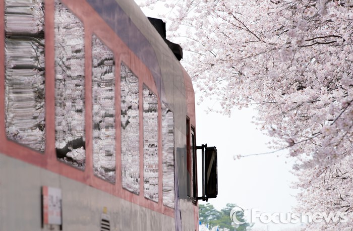 (창원=포커스뉴스) 2일 오후 경남 창원시 진해구 경화역을 찾은 관광객들이 만개한 벚꽃을 보며 즐거운 시간을 보내고 있다.