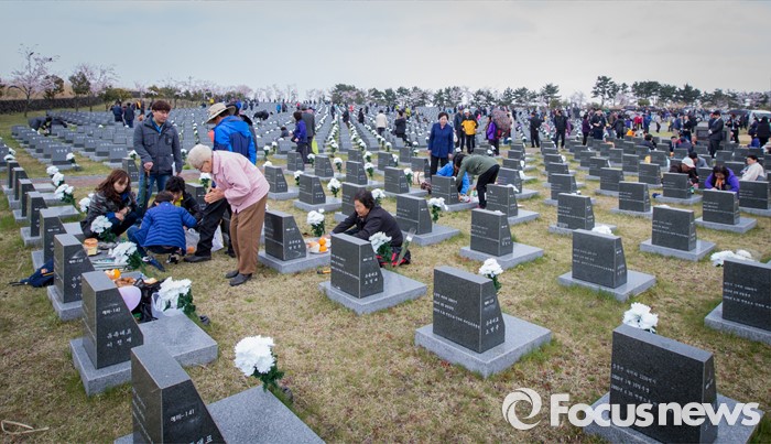 (제주=포커스뉴스) 3일 오전 제주 4ㆍ3 평화공원에서 열린 제68주년 4ㆍ3희생자 추념식에 참석한 시민들이 위령비 앞에서 예를 올리고 있다.