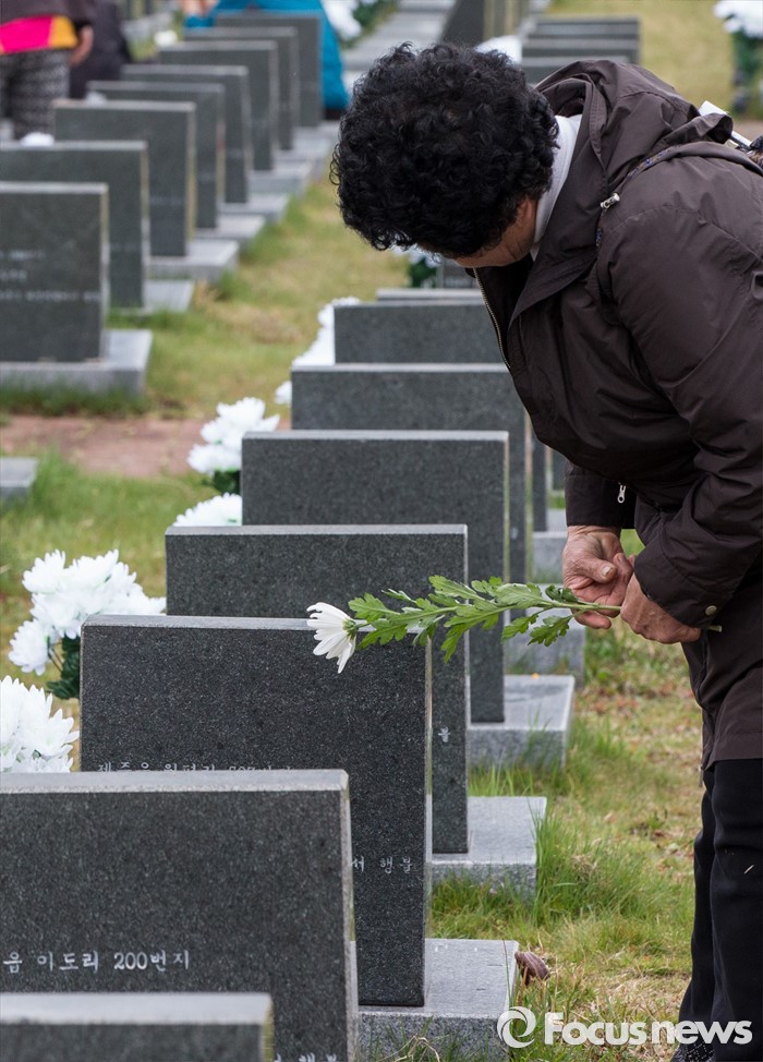 (제주=포커스뉴스) 3일 오전 제주 4ㆍ3 평화공원에서 열린 제68주년 4ㆍ3희생자 추념식에 참석한 시민들이 위령비 앞에서 예를 올리고 있다.