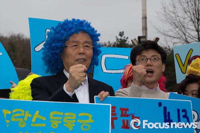 (서울=포커스뉴스) 3일 오후 서울 강서구 방화근린공원 일대에서 김종인 더불어민주당 비대위 대표 겸 선대위원장이 진성준 강서을 후보와 함께 유세를 하고 있다.