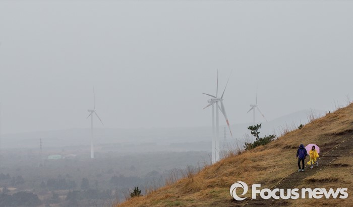 (제주=포커스뉴스) 3일 오후 제주 용눈이오름을 찾은 관광객들이 제주의 풍광을 즐기고 있다.