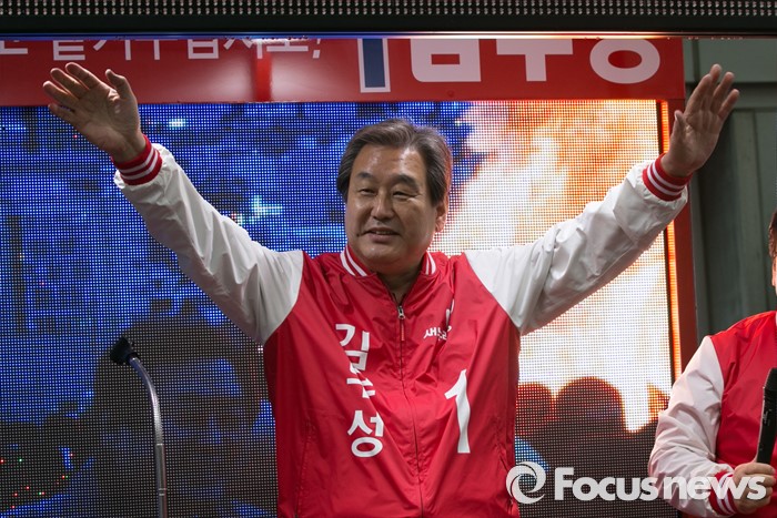 (부산=포커스뉴스) 부산광역시 중구영도구에 출마한 김무성 새누리당 대표가 3일 오후 부산시 중구 자갈치시장 공동어패류조합 앞에서 유세를 하고 있다.