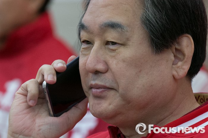 (창원=포커스뉴스) 김무성 새누리당 대표가 4일 오전 경남 창원시 의창구 원이대로 경남도당에서 열린 중앙선대위 현장 대책회의에 참석해, 전화통화하고 있다.