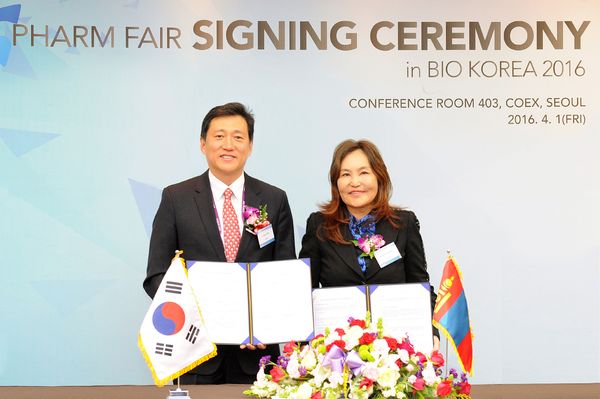 (서울=포커스뉴스) 동화약품(회장 윤도준)은 바이오코리아 2016의 팜페어(Pharm Fair)를 통해 몽골 식품, 의약품 유통회사인 몬소바얀(Mon So Bayan Co., Ltd)과 ‘미인활명수’에 대한 수출계약을 체결했다고 4일 밝혔다.