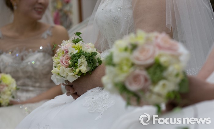 (대전=포커스뉴스) 4일 오전 대전 유성구 호텔ICC에서 열린 제18회 대전장애인자활실천대회 및 합동결혼식에서 신부들이 결혼식을 기다리고 있다.