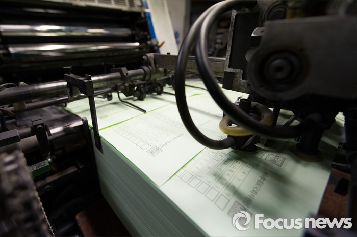 (서울=포커스뉴스) 제20대 국회의원 선거를 9일 앞둔 4일 오후 서울 영등포구 한 인쇄소에서 투표용지가 인쇄되고 있다.