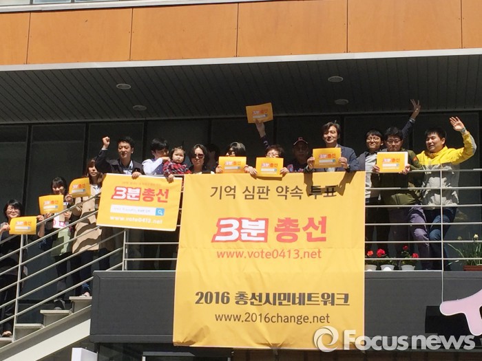 (서울=포커스뉴스) 2016총선시민네트워크(이하 2016총선넷)는 4일 서울 종로구 통인동 참여연대 사무실 앞에서 총선 출마 후보자에 대한 정보를 한데 모아 제공하는 '3분총선' 페이지의 시연 퍼포먼스를 진행했다.