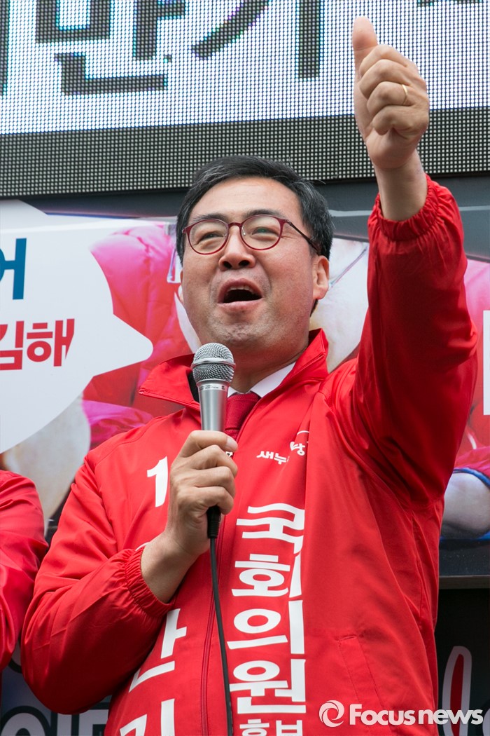 (김해=포커스뉴스) 이만기 새누리당 김해을 후보가 4일 오후 경남 김해시 내외로 외동전통시장 앞에서 유세를 하고 있다.