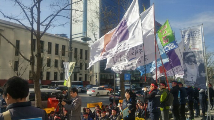 4일 서울 광화문 금융위 앞서 상임간부 결의대회 열어