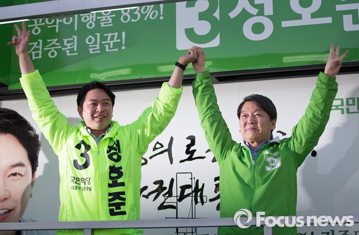 | △ 성동구을 국민의당 정호준 후보와 안철수 |