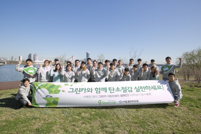 그린카는 캠페인의 시작으로 4일 서울환경운동연합과 잠실 한강공원에서 나무심기 봉사활동을 진행했다. 이번 봉사활동에는 그린카 이용호 대표를 포함한 임직원들과 그린카 회원 30명이 참여했다. 이들은 나무 200그루를 심으며 환경 보호의 의미를 되새겼다.