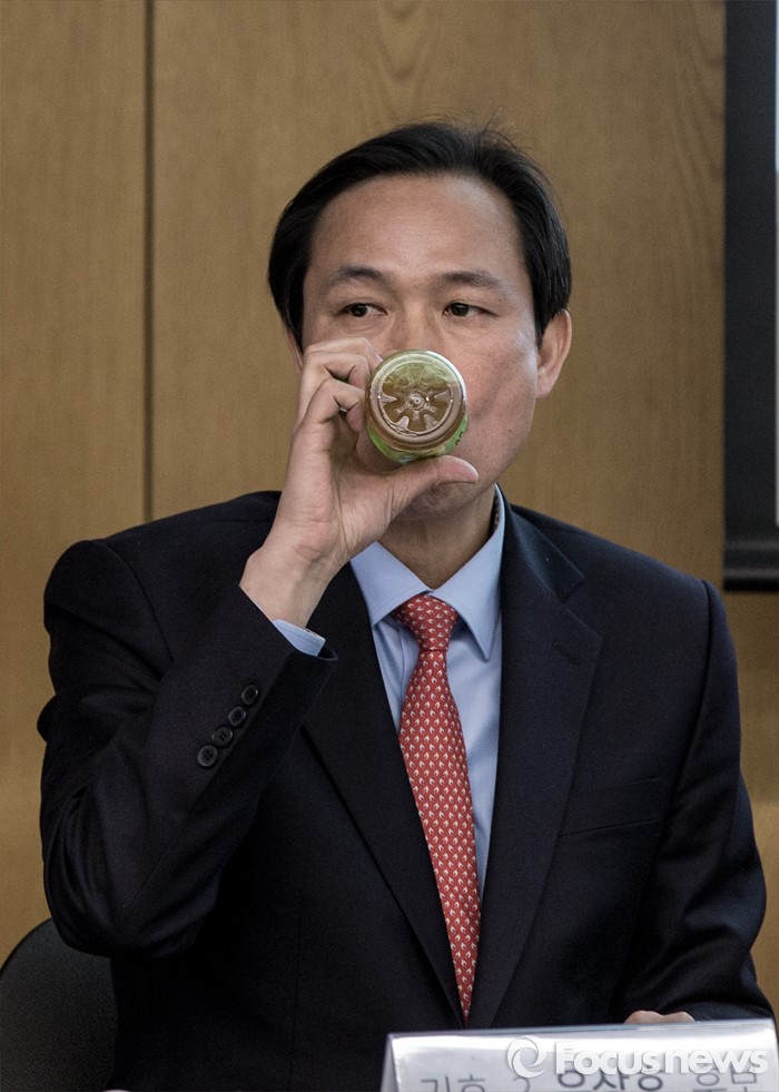 | △ 물마시는 우상호 후보 |
