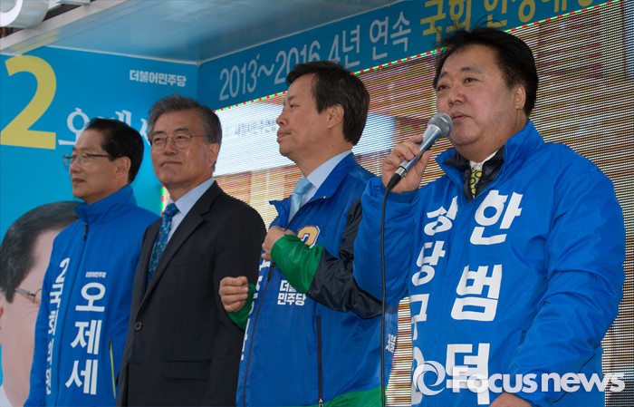 (청주=포커스뉴스) 4일 오후 충북 청주 무심천인라인스케이트장에서 한범덕 청주 상당구 후보가 시민들에게 지지를 호소하고 있다.