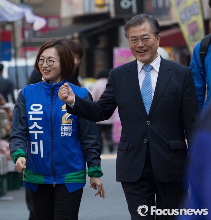최근 대구 동을 무소속 유승민 후보, 고양갑 정의당 심상정 후보 등 각 정당 후보들 딸·아들의 외모가 화제가 됐다.지난달 27일 오후 경기 성남 중원구 모란오거리에서 문재인 더불어민주당 전 대표가 은수미 더민주 경기 성남중원 후보와 거리인사를 하고 있다. 2016.03.27 김인철 기자