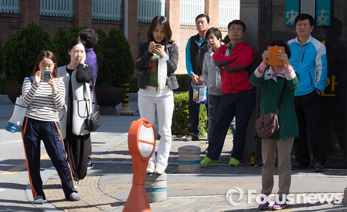 (대전=포커스뉴스) 5일 오전 대전 서구 한민시장 일원에서 시민들이 김무성 새누리당 대표 최고위원의 지지 호소를 듣고 있다.