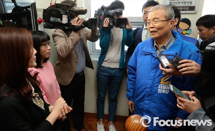 (아산=포커스뉴스) 김종인 더불어민주당 비대위 대표 겸 선대위원장이 5일 오전 충남 아산시 진성어린이집을 방문해 교사들과 대화하고 있다.