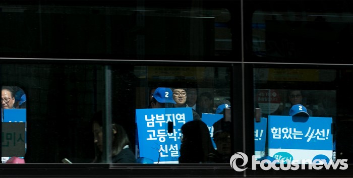 | △ 버스 승객들 향한 지지 호소 |