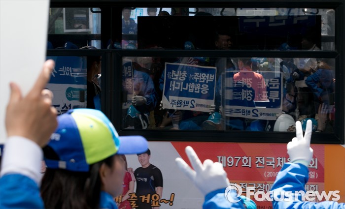 | △ 선거유세 지켜보는 버스 승객들 |