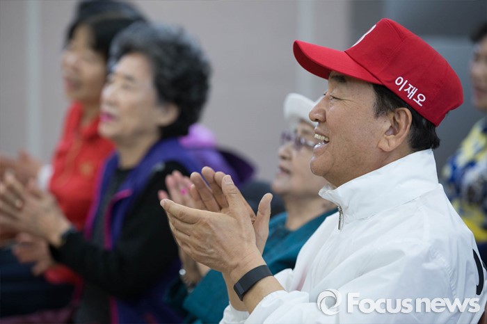 (서울=포커스뉴스) 은평을 무소속 이재오 후보가 5일 오전 서울 은평구 불광노인복지관을 찾아 어르신들과 함께 노래교실에서 수업을 듣고 있다.