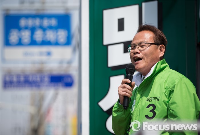 (의정부=포커스뉴스) 김경호 국민의당 의정부갑 후보가 5일 오후 의정부시 태평로 제일시장 앞에서 선거 유세를 하고 있다.