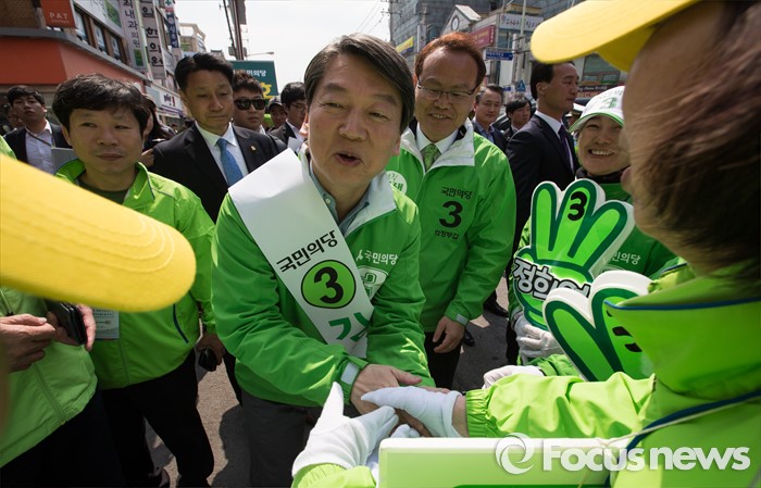 (의정부=포커스뉴스) 안철수 국민의당 상임공동대표가 5일 오후 의정부시 태평로 제일시장 앞에서 김경호 의정부갑 후보 지원유세를 하고 있다.