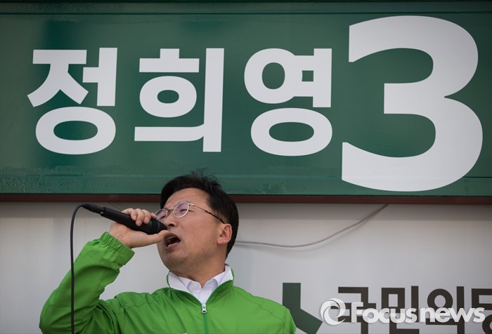 (의정부=포커스뉴스) 정희영 국민의당 의정부을 후보가 5일 오후 의정부시 금오동에서 선거 유세를 하고 있다.