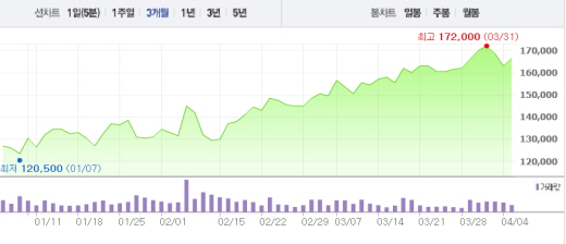 손 연구원은 “17일 열리는 산유국 회의, 26일 열리는 FOMC 회의결과에 따른 유가 반락 시, 현재의 모순된 논리에 대한 가격 반영이 있을 것”이라고 덧붙였다.SK이노베이션 주가흐름<사진출처=네이버 캡쳐>