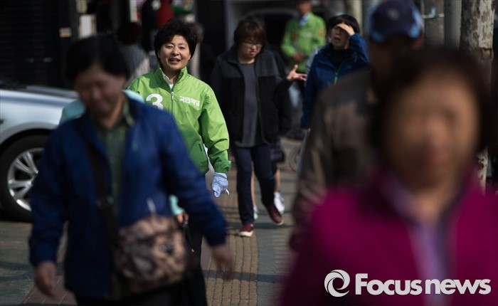 (서울=포커스뉴스) 국민의당 은평을 고연호 후보가 5일 오후 서울 은평구 갈현동 인근에서 유세를 하고 있다.