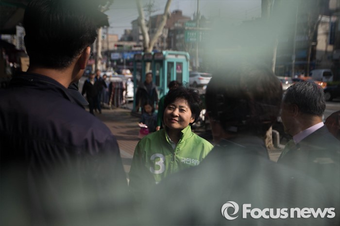 (서울=포커스뉴스) 국민의당 은평을 고연호 후보가 5일 오후 서울 은평구 갈현동 인근에서 유세를 하고 있다.