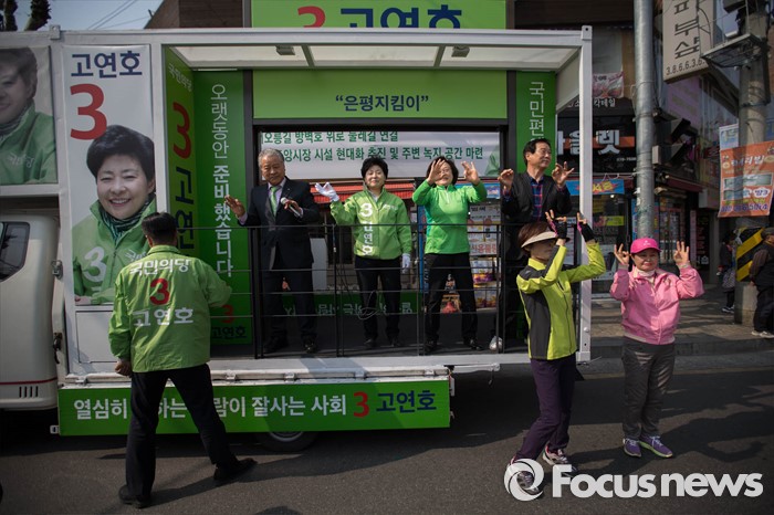 (서울=포커스뉴스) 국민의당 은평을 고연호 후보가 5일 오후 서울 은평구 갈현동 인근에서 유세를 하고 있다.