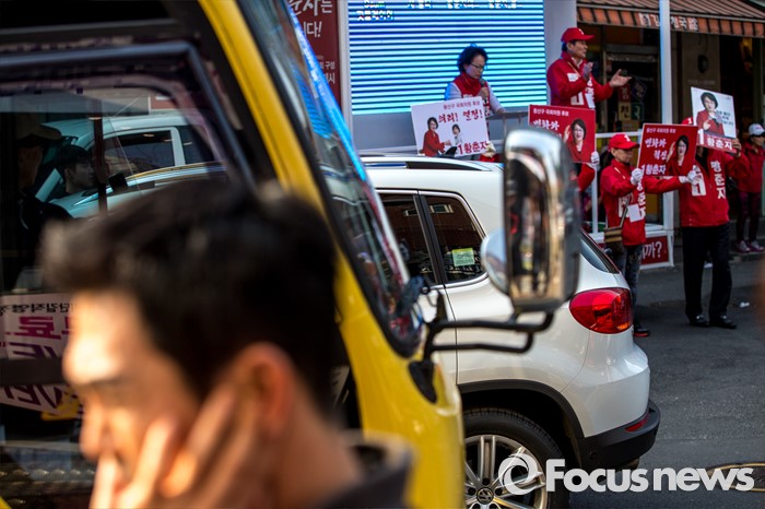 (서울=포커스뉴스) 황춘자 새누리당 용산구 후보가 5일 오후 서울 용산구 이태원동 일대에서 유세를하며 주민들에게 한 표를 호소 하고 있다.